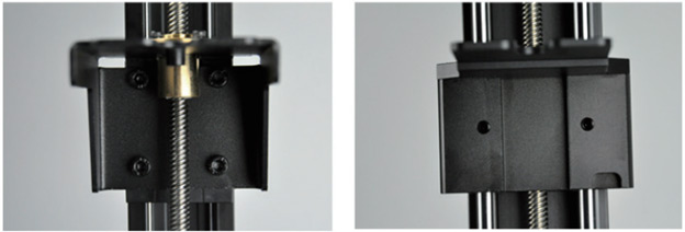 • В версии 1.5 используется система с двумя направляющими, в значительной степени уменьшающая вобблинг. Трапецеидальный винт, установленный по центру, обеспечивает лучшую фиксацию крепления по оси Z и помогает добиться совершенных результатов печати.